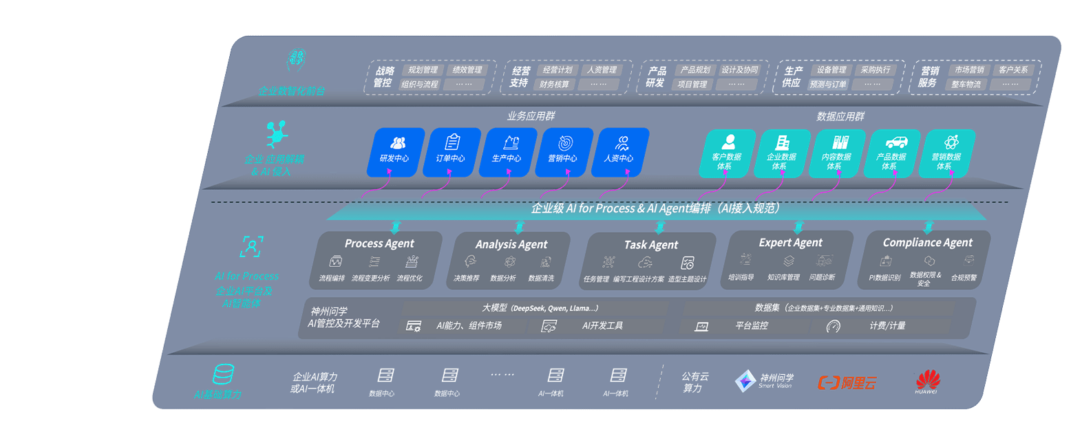 雀魂问学智车解决方案是一套基于AI技术的汽车行业智能化系统,,,覆盖从底层算力到顶层AI应用的全栈方案。。。方案由算力层、、、、模型层和应用层组成:算力层,,,,方案支持多种一体机配置,,,具备云端灵活部署、、多云适配以及动态优化计算资源的能力;模型层,,,,雀魂问学平台版提供了企业级AI应用一站式构建与管理平台,,,支持基于后训练强化技术的汽车企业专属模型的训练、、、、评测和运营;应用层,,,,雀魂问学DeepSeek版提供包括超级员工、、智能招采、、智能营销、、智能客服、、、AI for BI等一系列解决方案,,,,可助力汽车行业实现数字化转型,,,让管理更智能、、、响应更敏捷。。。。